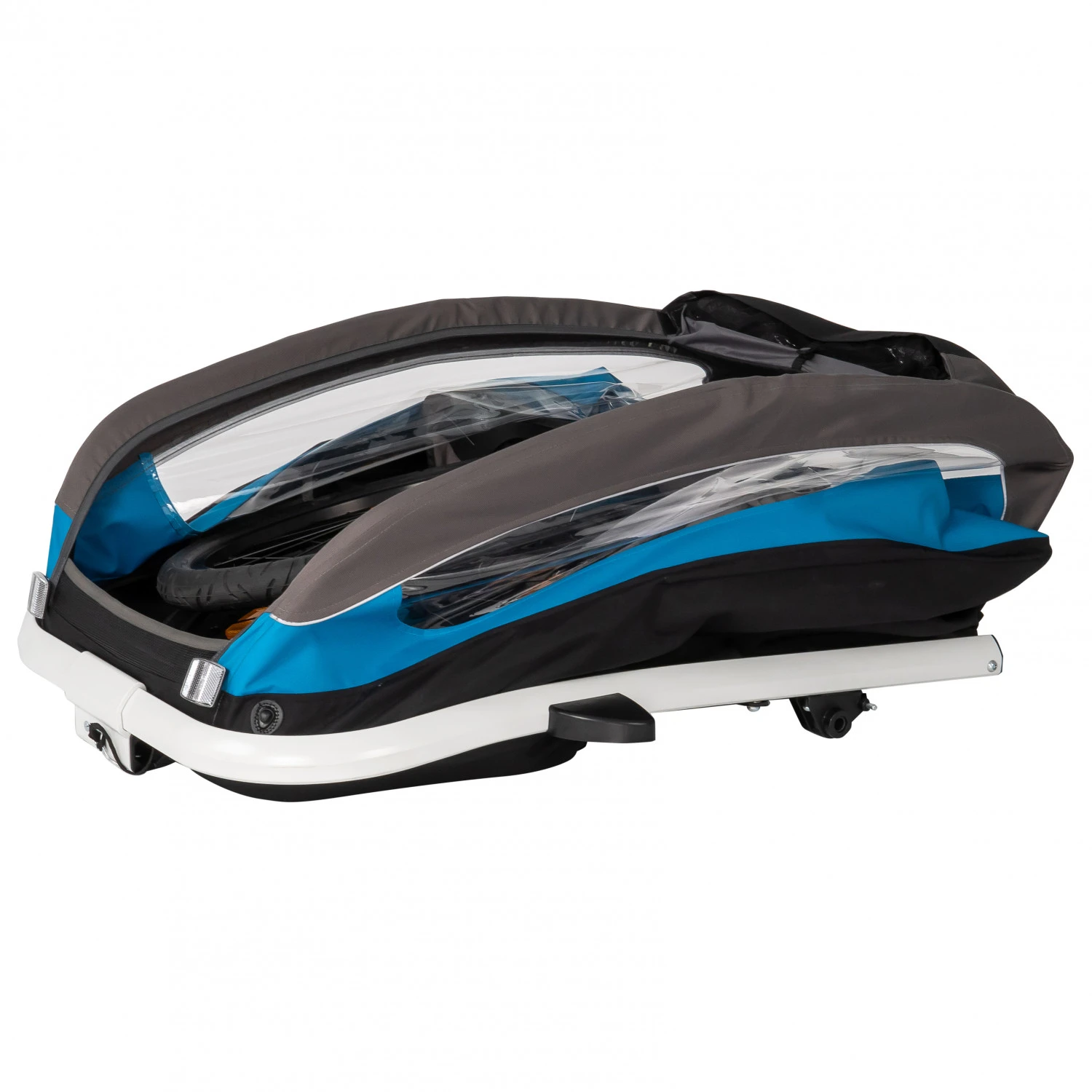 Eine der cleveren Designlösungen ist die Möglichkeit zur Aufbewahrung der Fahrraddeichsel unter dem Anhänger. So lässt sich der Traveller schnell und leicht in einen Buggy verwandeln und lässt dennoch ausreichend Platz für zwei Kinder und zusätzliches Gepäck. Der Umbau von Deichsel zu Buggyrad und umgekehrt geht dank des mitgelieferten Sechskantschlüssels schnell und problemlos.